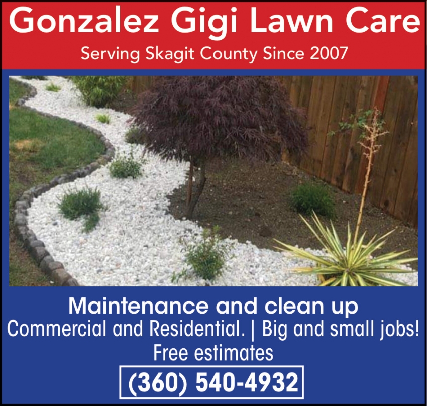 Aug 26, 2023. Gonzalez Gigi Lawn Care Lawn & Land Care Ads from GoSkagit Services